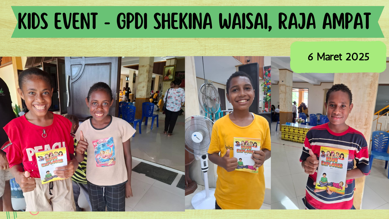 "Saya senang membaca Explorer 2 Pelajaran 3 "Allah di Pihakku" karena mengingatkan saya bahwa Allah selalu bersama saya walaupun melakukan dosa. Sekarang saya lebih rajin beribadah, membaca Alkitab, dan berdoa. Lebih mudah memaafkan teman yang berbuat salah, menghormati orangtua, dan lebih suka berbuat baik. Saya ingin melayani Tuhan sepanjang hidup saya.